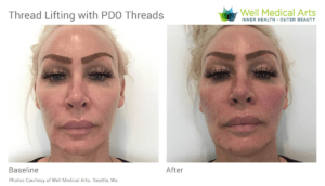 PDO Threads before and after in Seattle at Well Medical Arts. Learn more about Thread Lifting in Seattle at https://wellmedicalarts.com/thread-lifting/ or call. 206-935-5689 to schedule your first treatment.